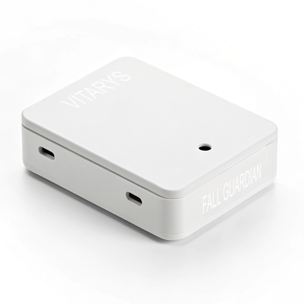 VITARYS Fall Guardian Device is a compact, camera-enabled system installed in key rooms of a home or care facility, such as bedrooms and living areas. It operates completely offline, with the AI model running directly on the device to ensure maximum privacy and zero data transmission during normal operation. Each device communicates with the central AI Hub via Bluetooth only when an incident or alert is detected, minimising unnecessary connections and maintaining a secure environment.
